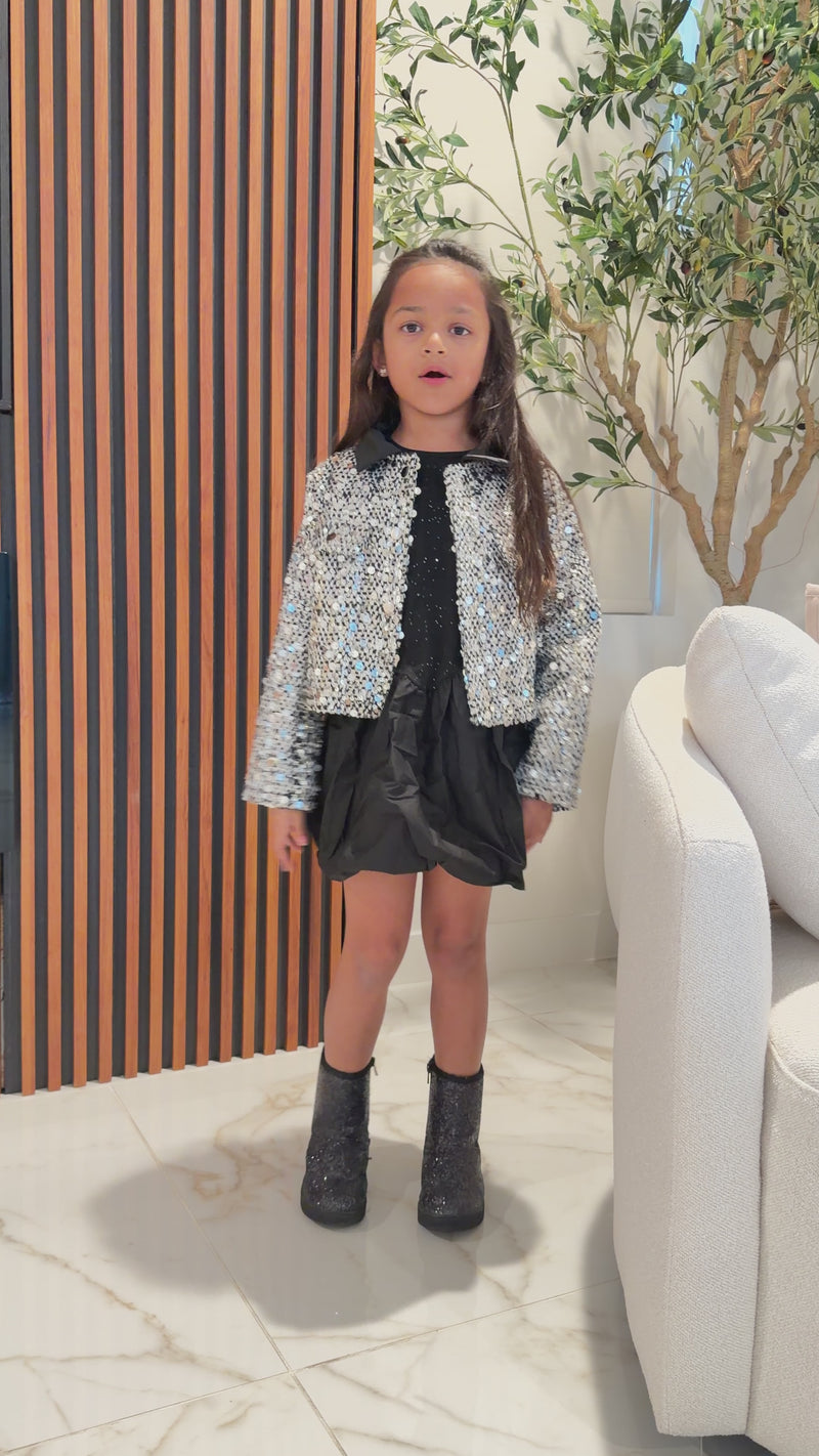 Sparkle Night Black Dress with Sequin Jacket – Party Wear Set for Girls