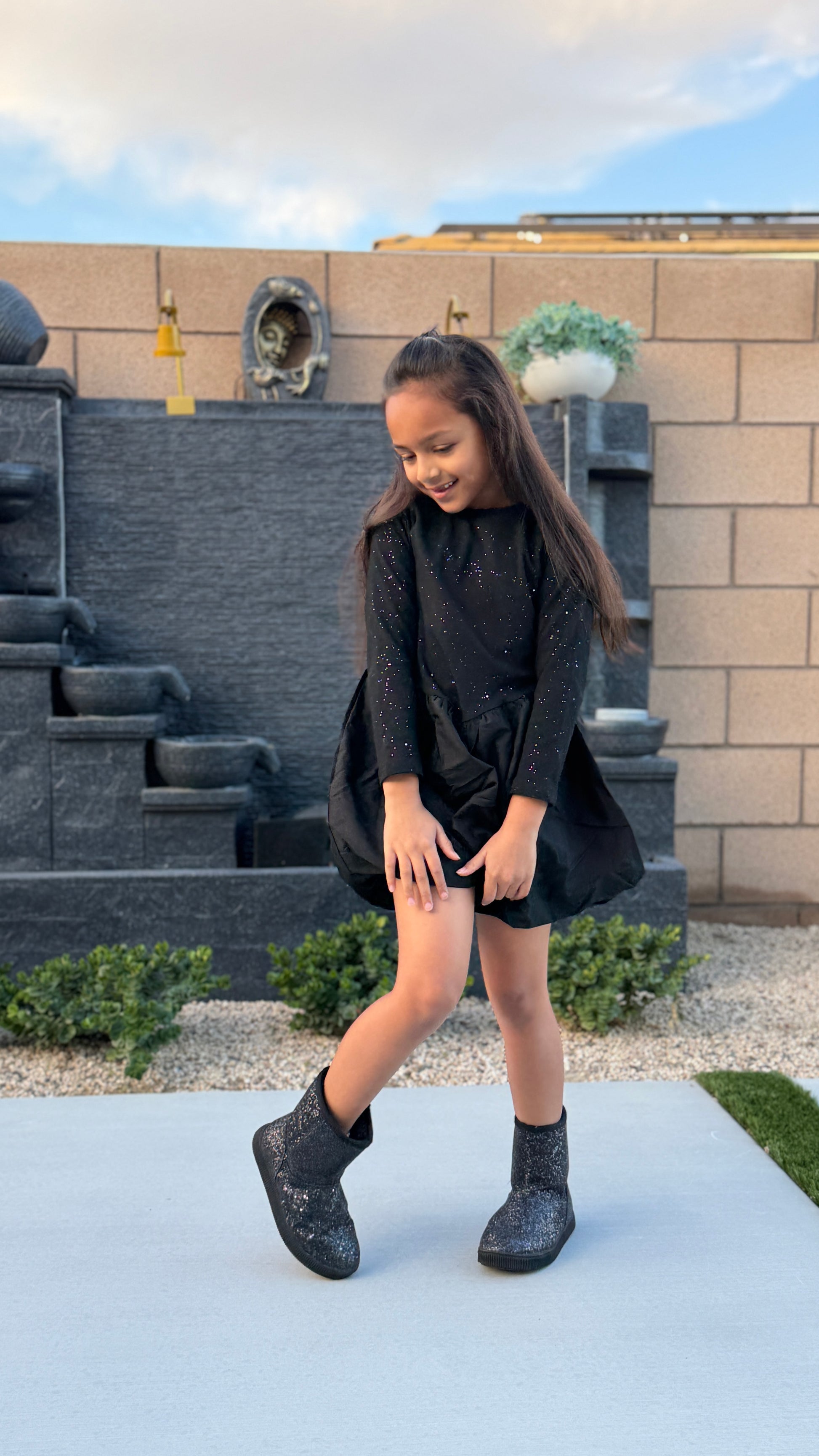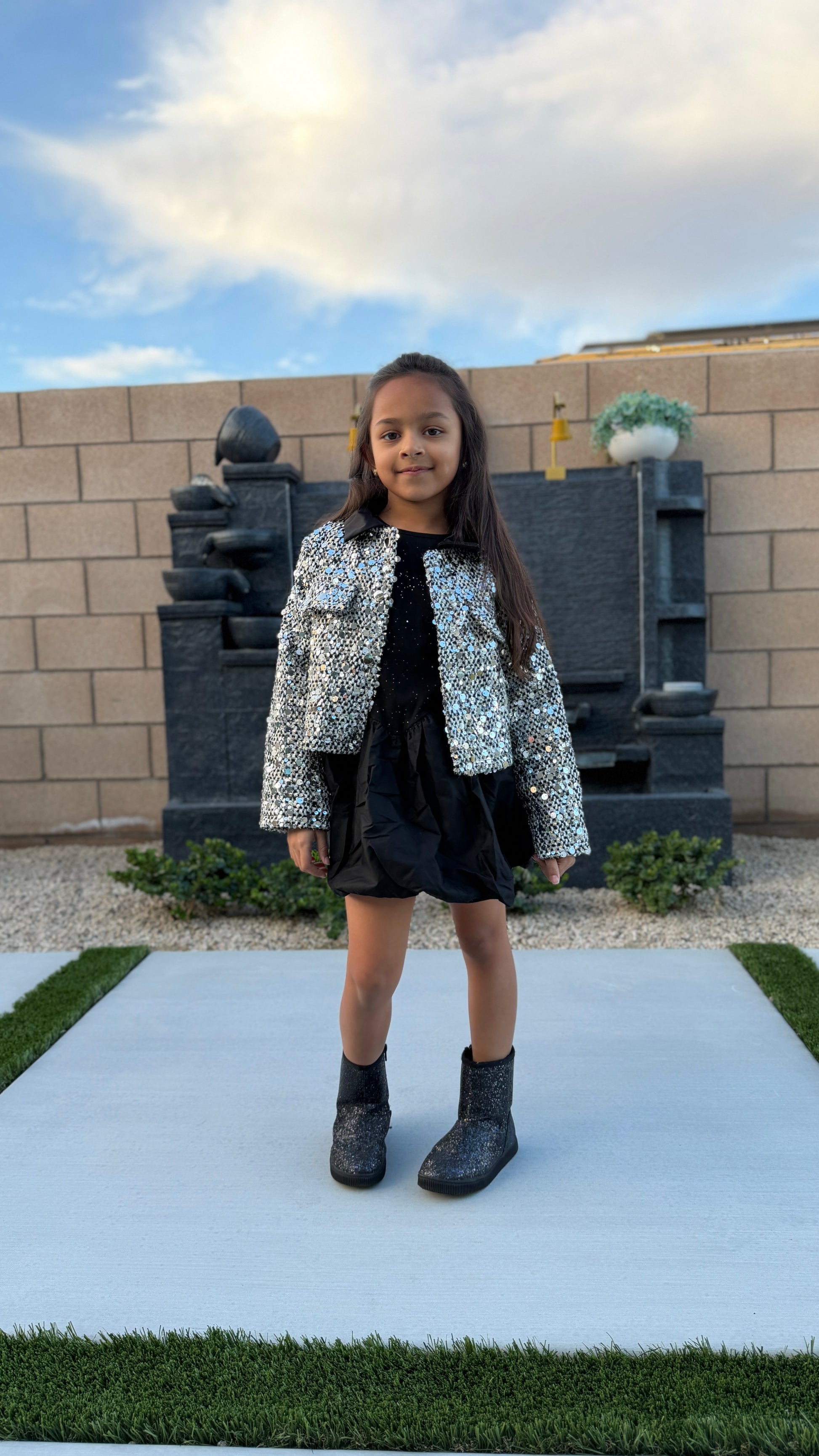 Sparkle Night Black Dress with Sequin Jacket – Party Wear Set for Girls